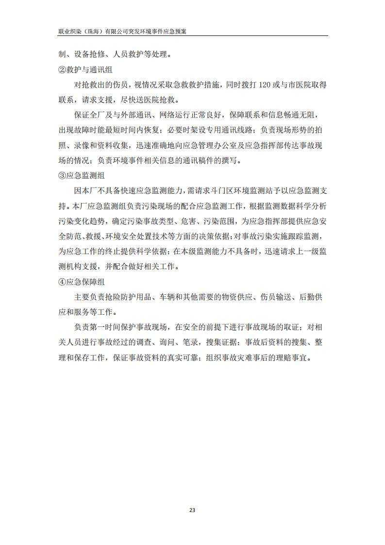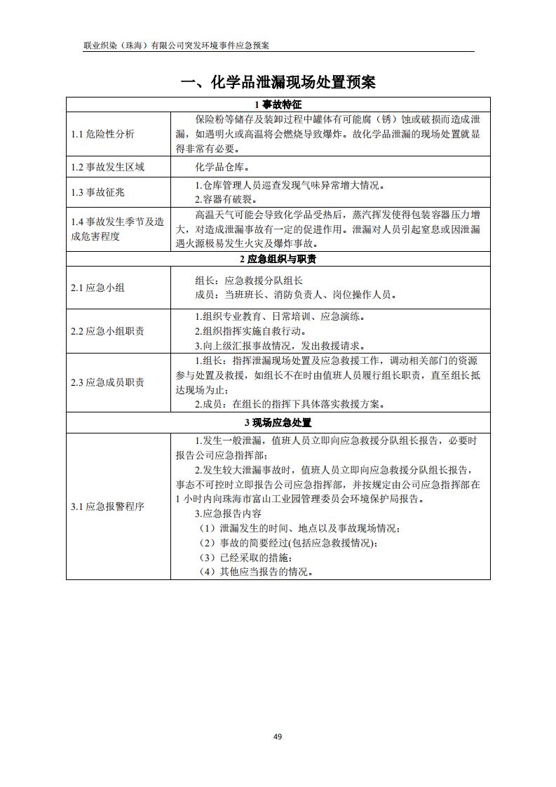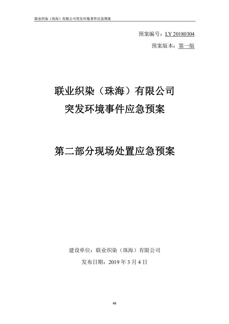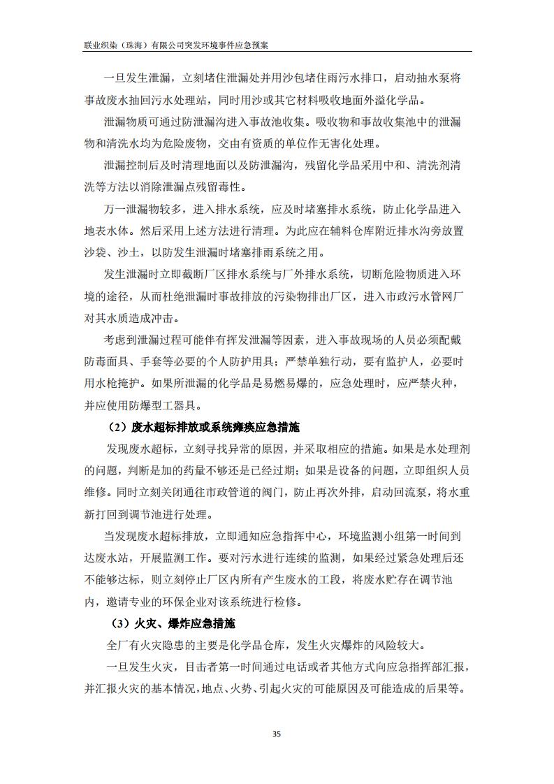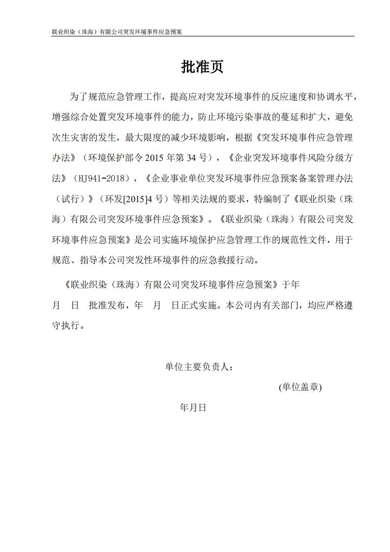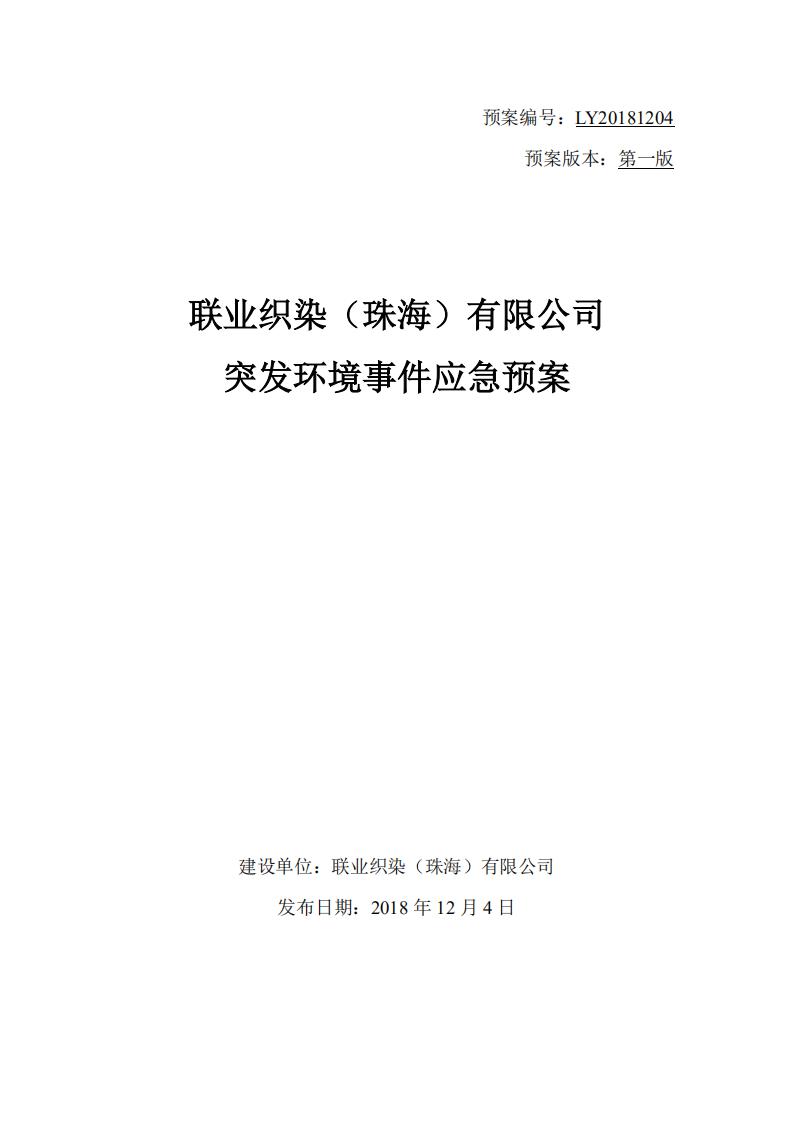 联业织染(珠海)有限公司预案