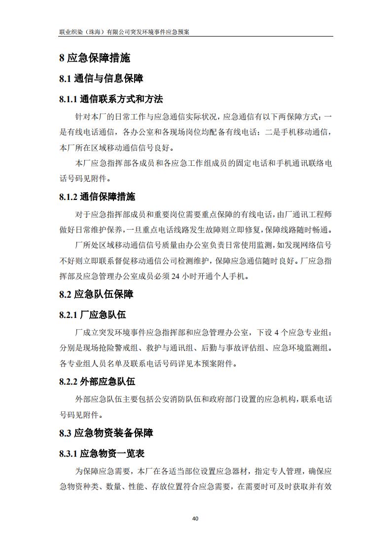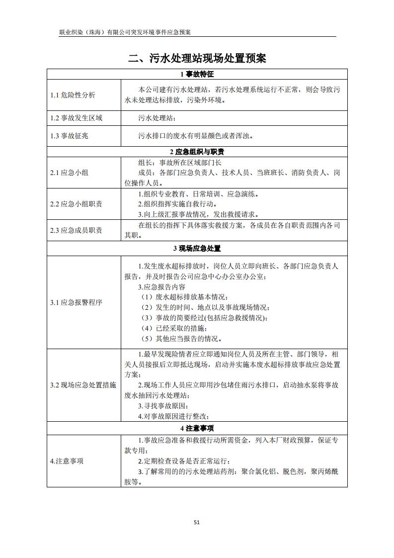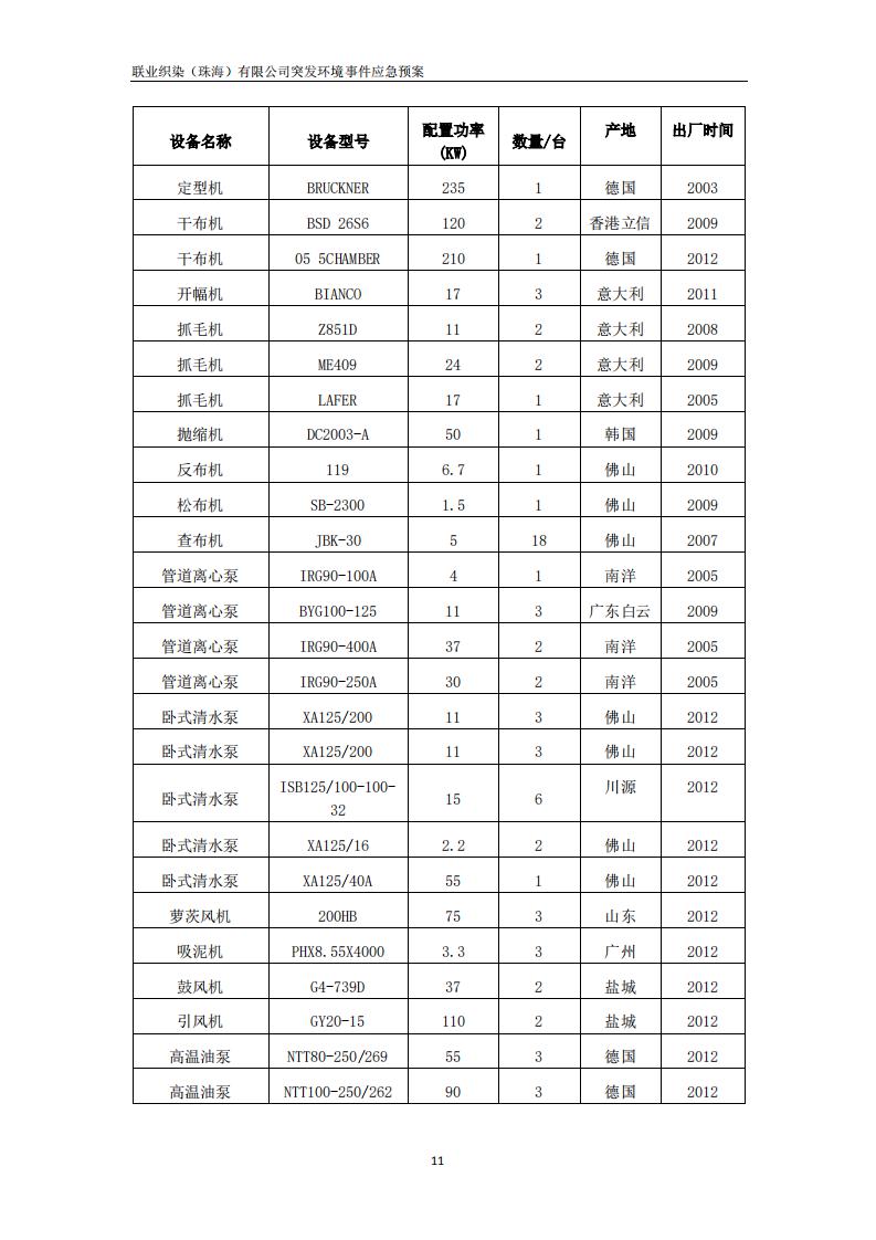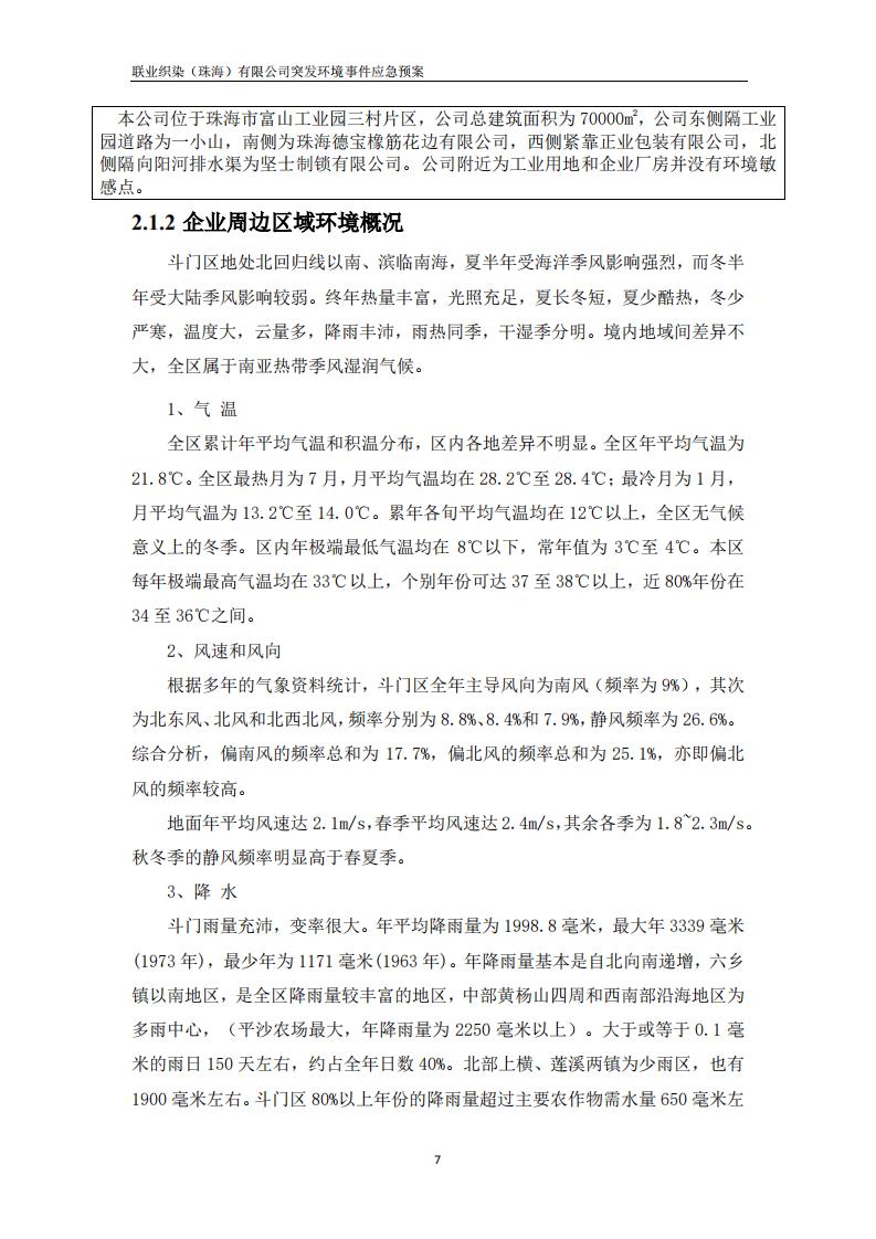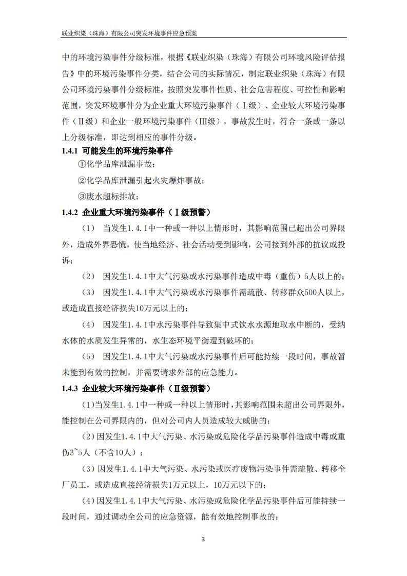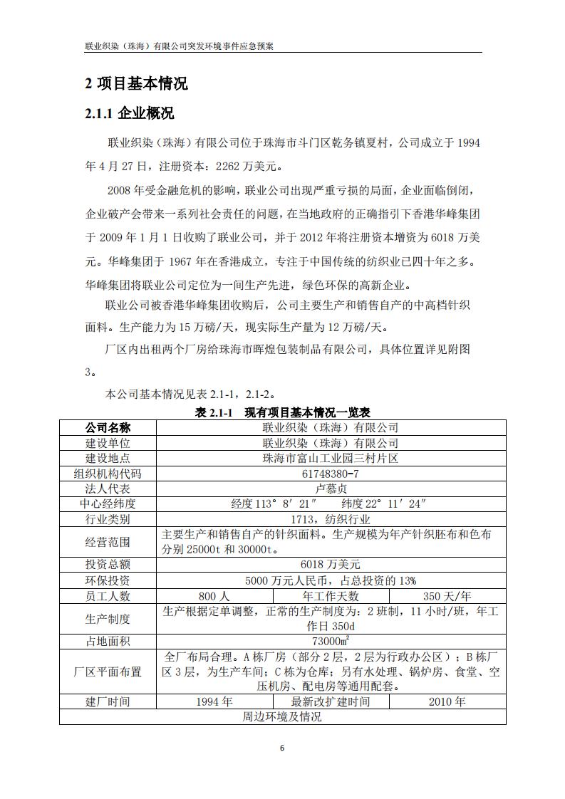 联业织染(珠海)有限公司预案