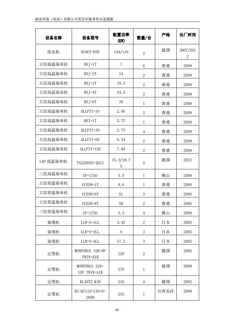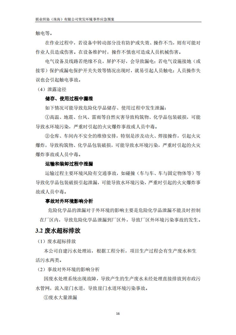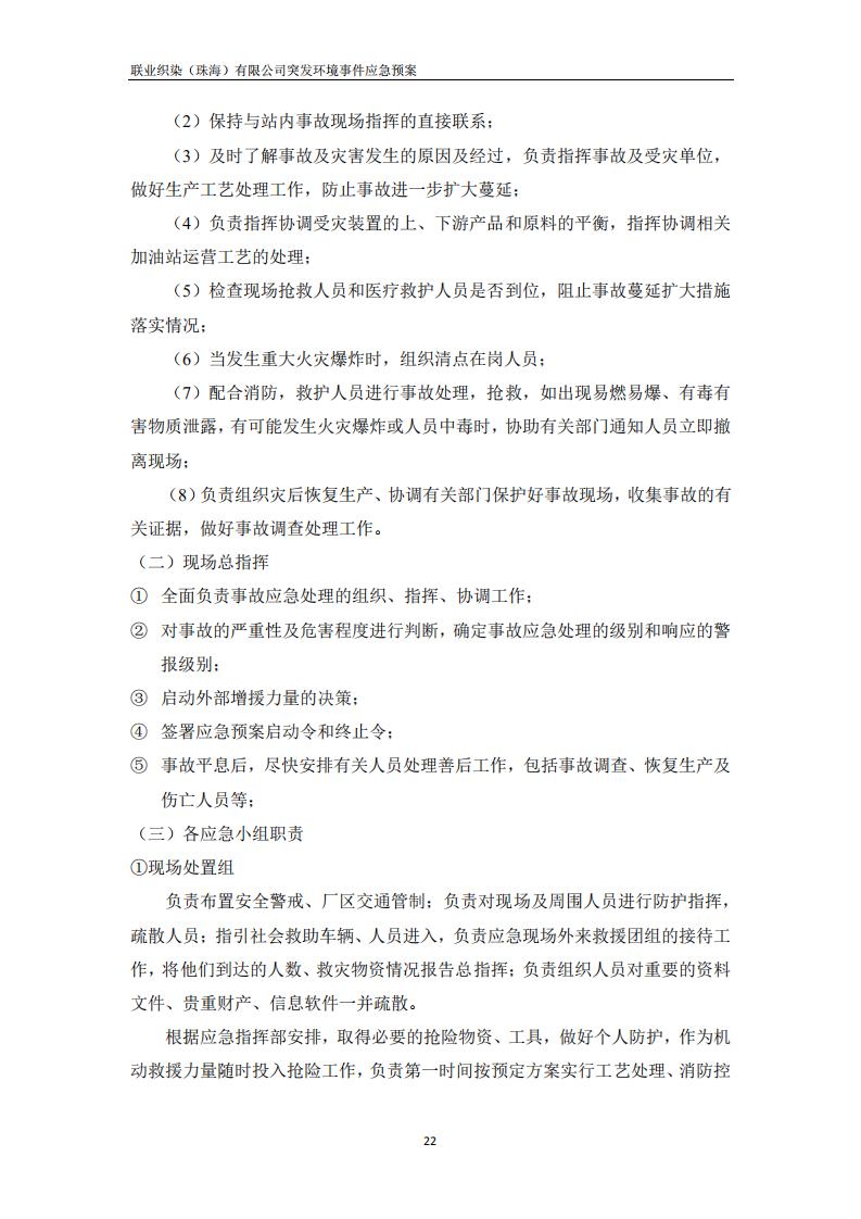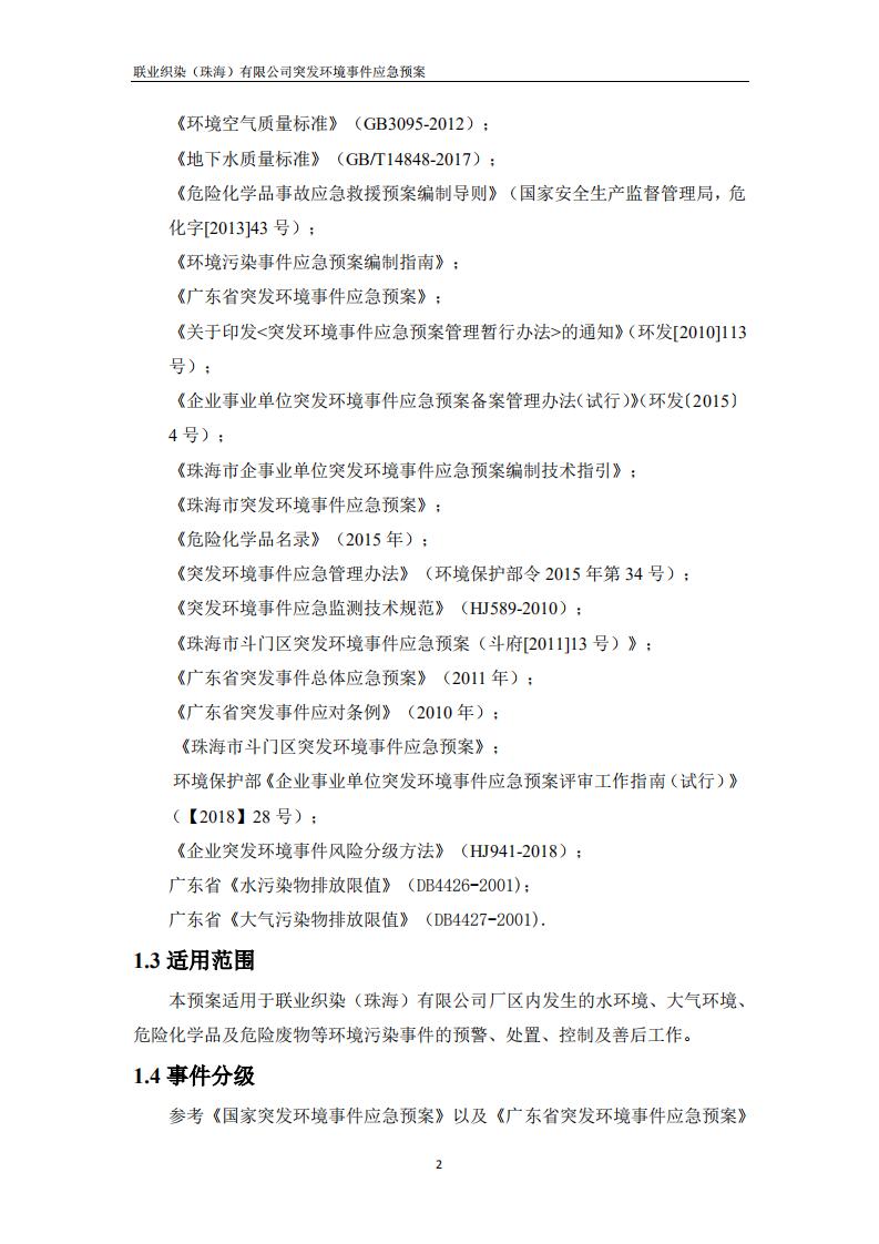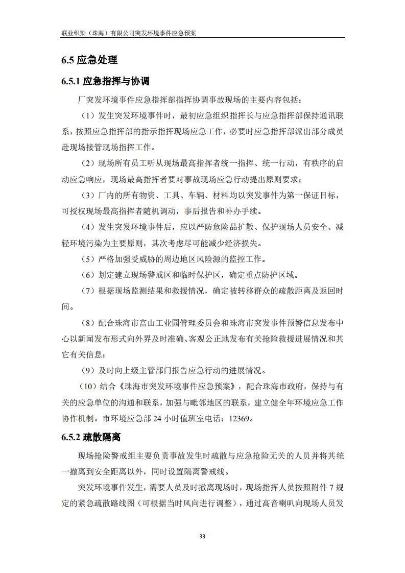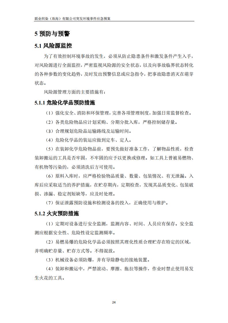 联业织染(珠海)有限公司预案