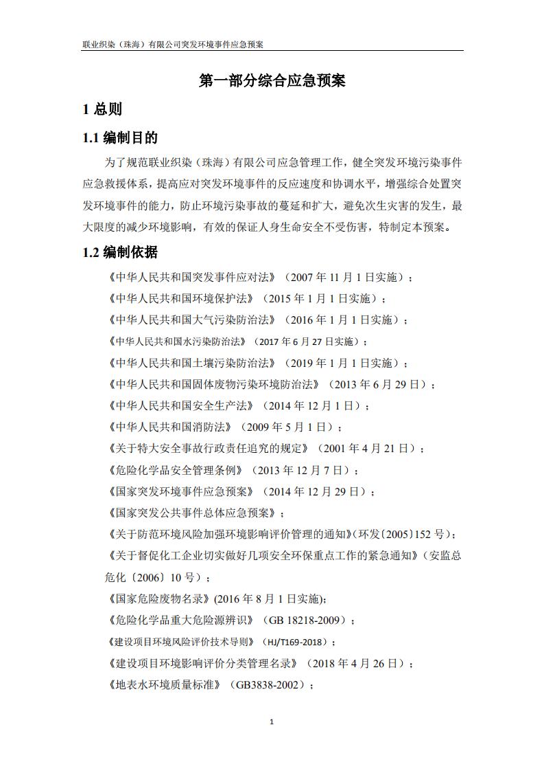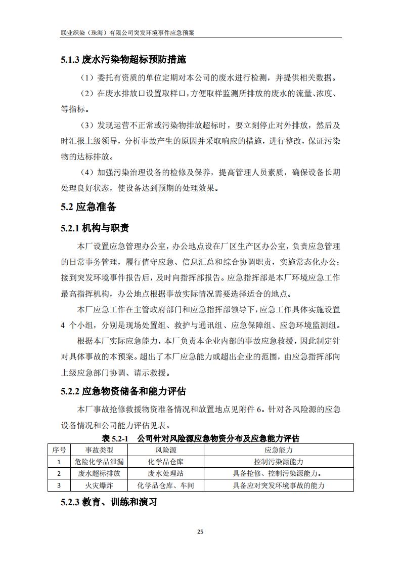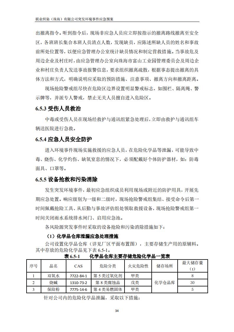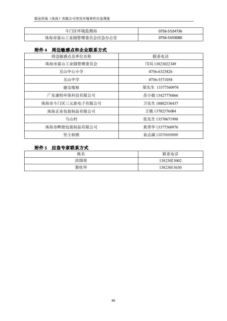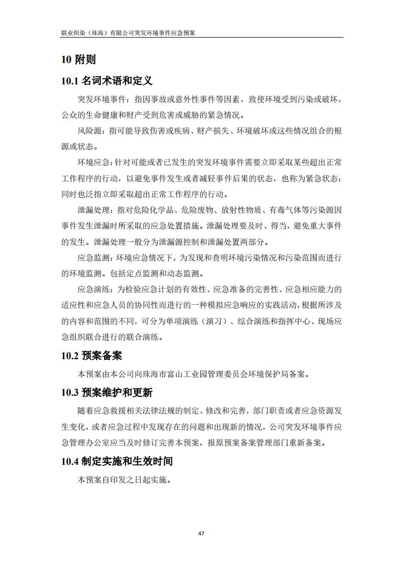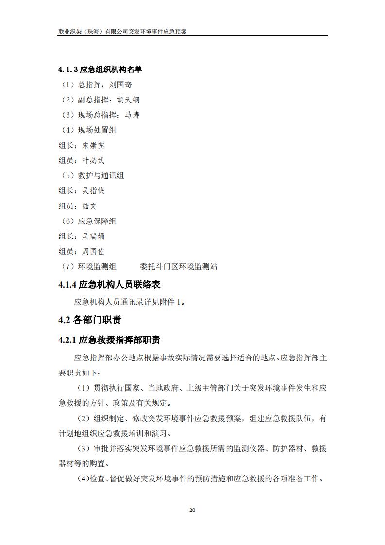 联业织染(珠海)有限公司预案