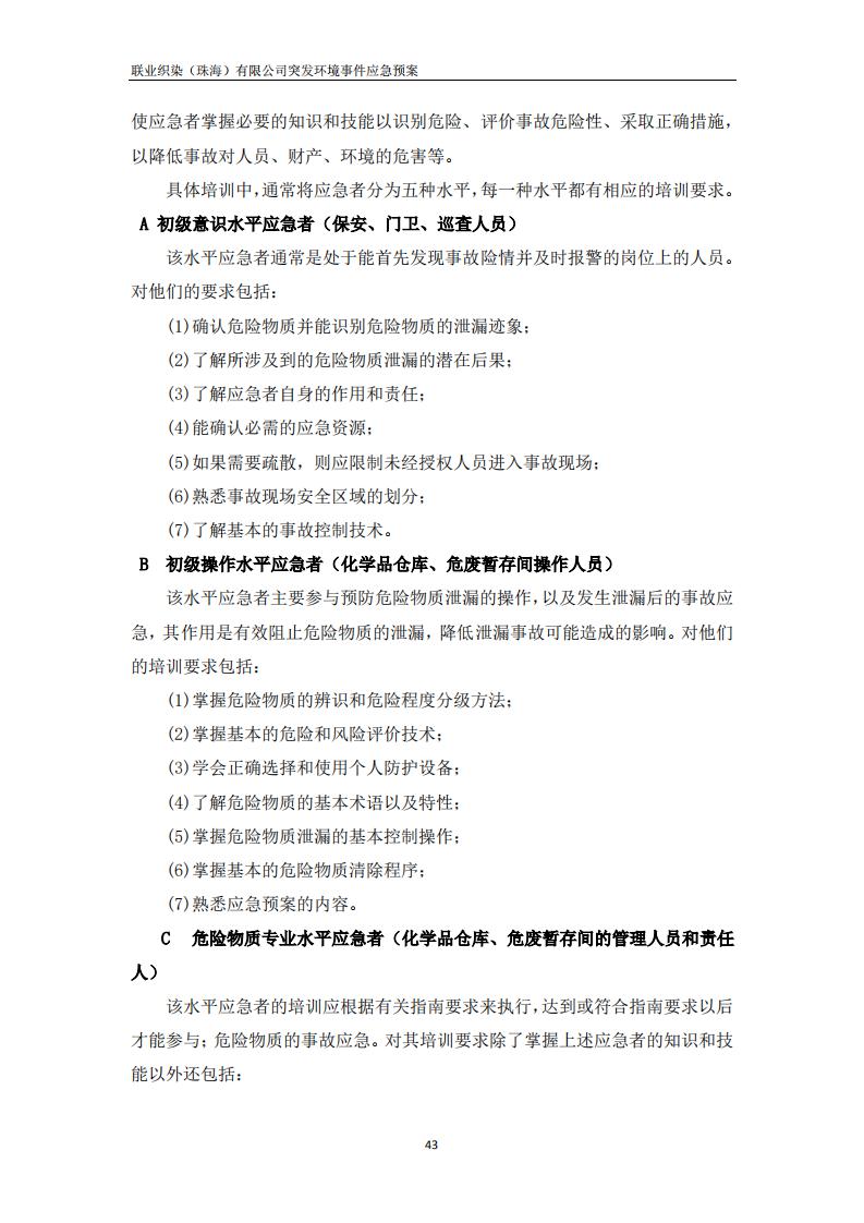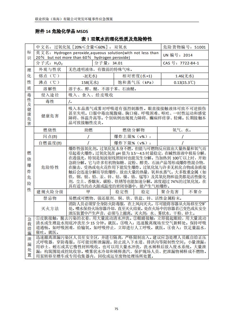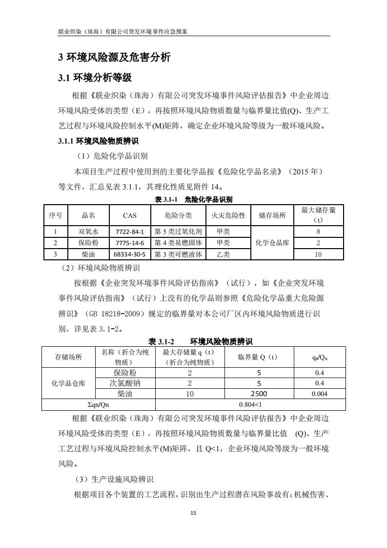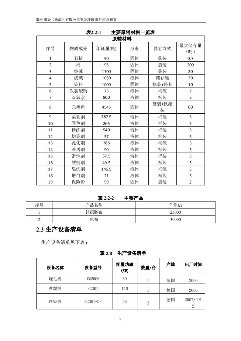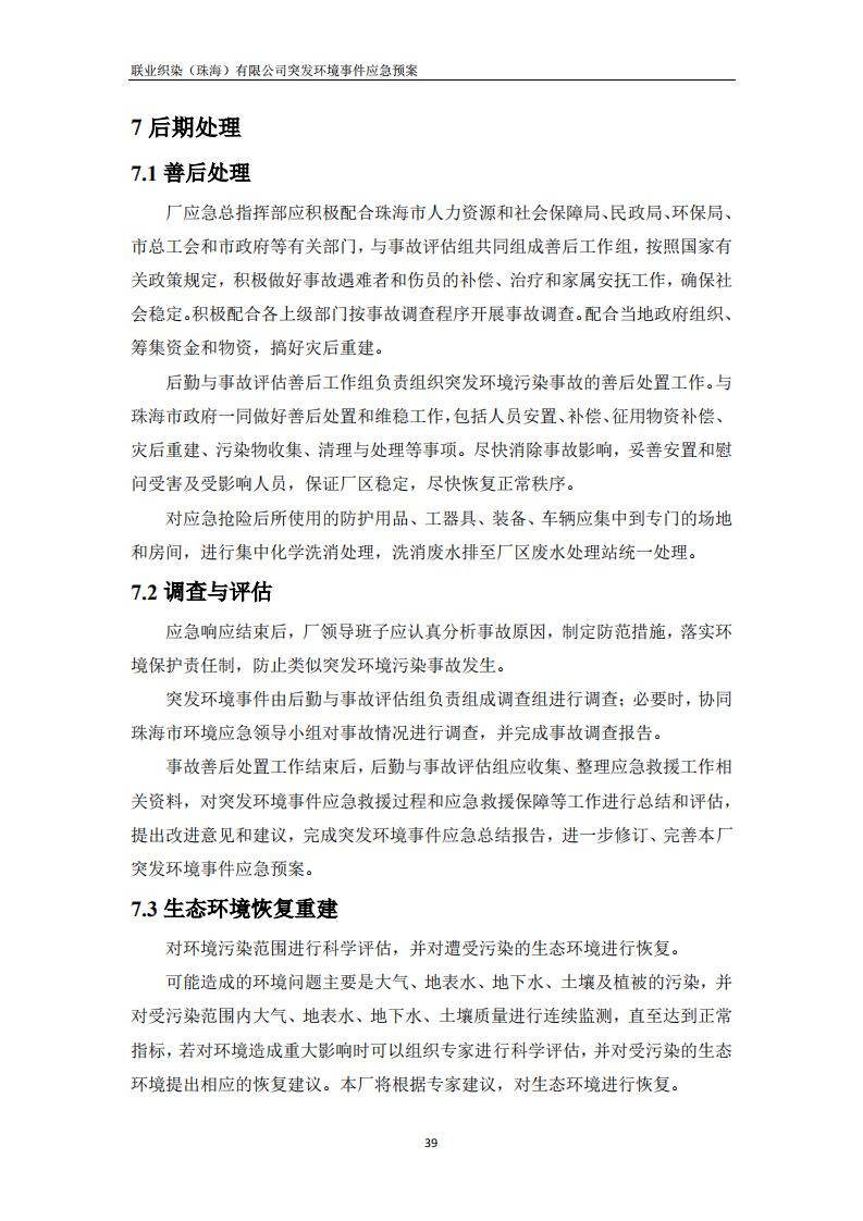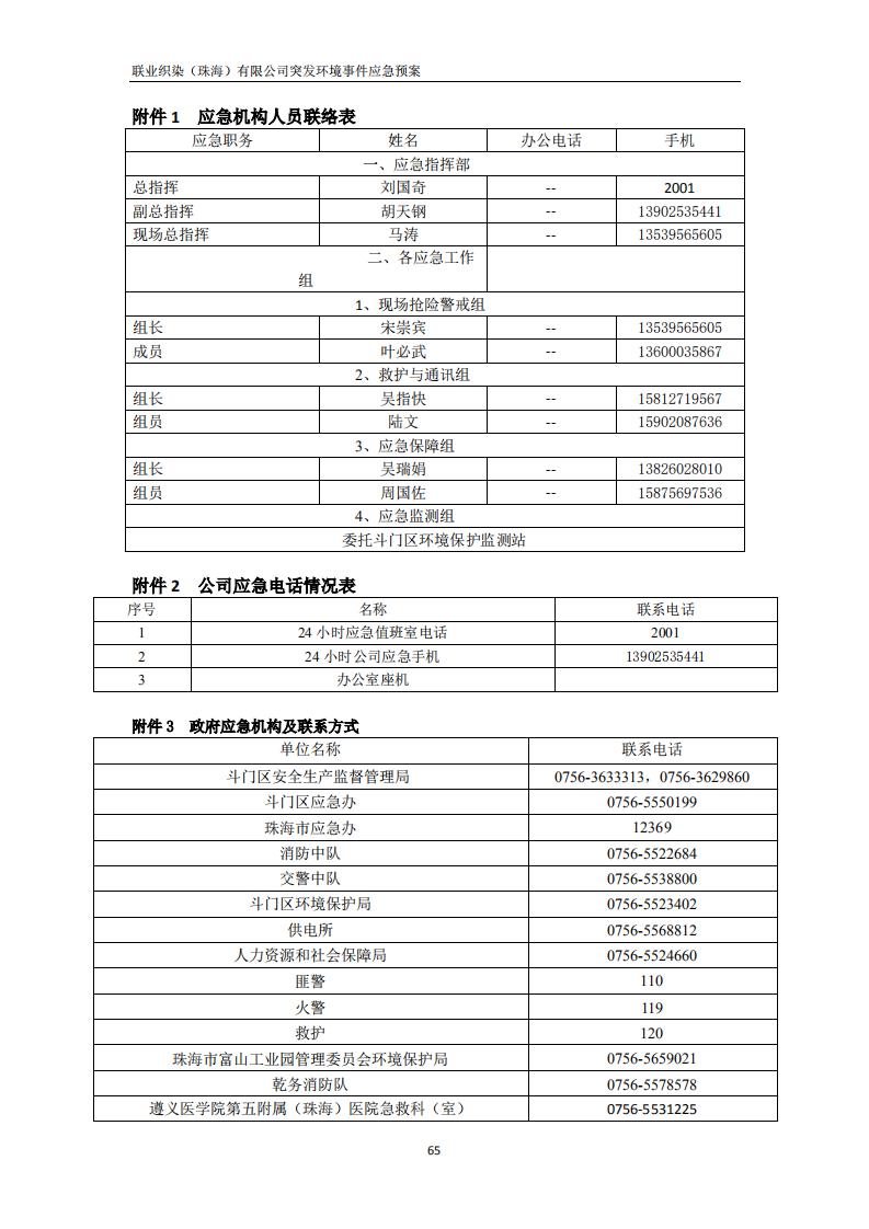 联业织染(珠海)有限公司预案